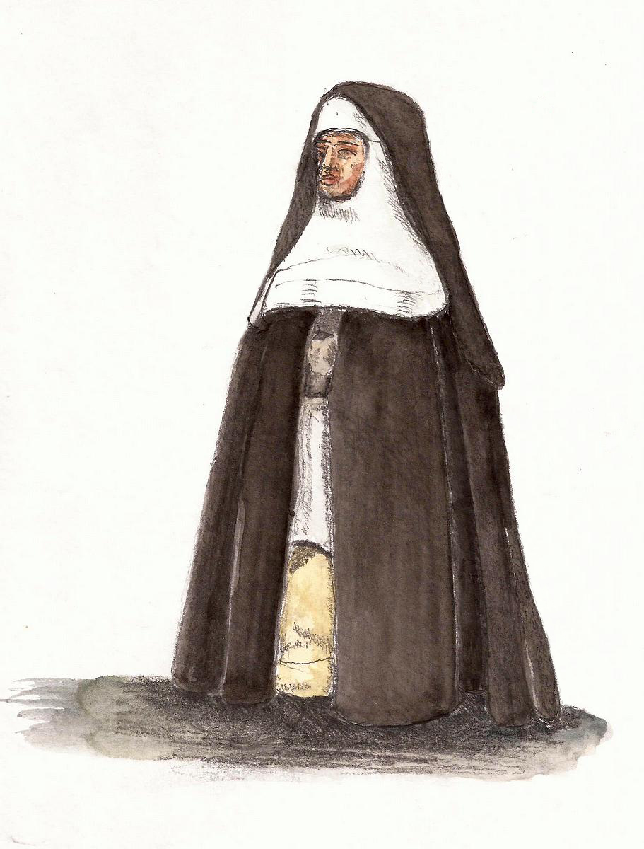 The museum is very nice. Mostly it’s religious artifacts of little interest to me but the ambience is great if you like quiet like I do. They took us on a tour of the museum and then we were left to our own devices to find something to sketch. I chose a very nice doll, dressed like a nun. Fun to draw but I found it hard to paint black on black folds in the fabric. BUT, I sketched, on location, as an urban sketcher. Wah, hoo!!!