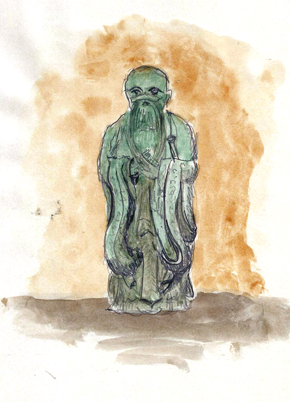 It became lunch time and we went to a restaurant and continued gabbing but ultimately decided we should go sketch. It was bitter cold and windy so we walked across the street and quickly sketched a statue of Confucius. I started it too small and ended the same way but my hands were frozen so I didn’t care. Eventually we decided to regroup in the morning, hoping for better weather.