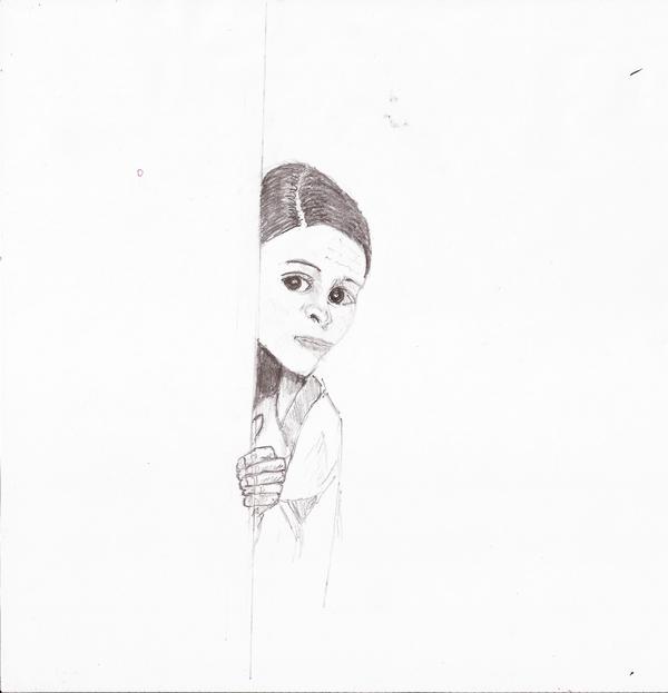 On another day I drew this young girl. Seems these days I’ve got a thing for little girls looking around corners. This one was done on photocopy paper and I decided not to bother trying to do watercolor. This, too, was done with a pencil.