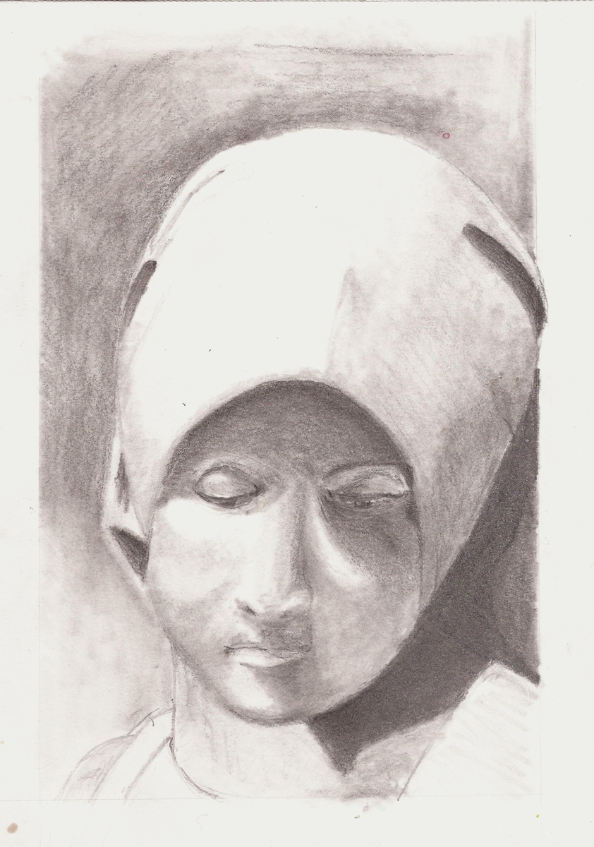Here’s my something, a portrait of the head of this statue. I talked about it and the museum website that allowed me to see it back in April. I’m not sure I’ve got the patience to do this kind of art and I’m certain that I quit working on this portrait too soon. Nevertheless, I feel I learned a lot in the process and will do another.