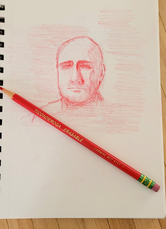 I wanted to test how this paper accepts a pencil sketch. Several of the “Canvas pads” typically sold for oils are horrible for drawing. Stonehenge oil is the opposite. Its 140lb paper surface feels like you’re drawing on Stonehenge drawing paper, which is wonderful. Here’s my sketch and the subject.