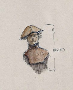 We continued sketching and, it seemed, my sketches got smaller and smaller. Here’s one I did of a hand-carved head that was only two inches tall.