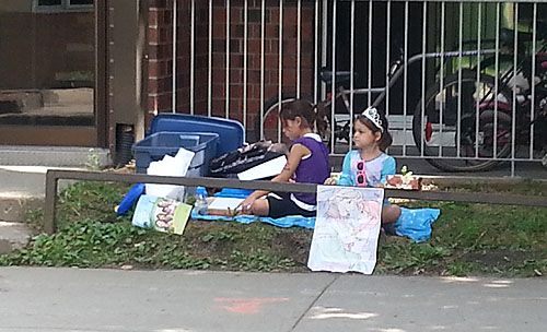 Anyways, I was walking down that same street, though on the opposite side of the street and I nearly laughed out loud. It seems this intrepid entrepreneur has expanded. I guess business was so good she had to get an assistant to collect the money so the ‘artiste’ wouldn’t be bothered by the customers. A sign has been added and the new employee wears a tiara. I guess business is booming.