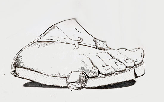 I decided to start this new exhibit by putting a toe in the water. In fact, I drew the whole foot. This foot came from what must have been a huge statue as this broken portion of the foot is at least three feet long.