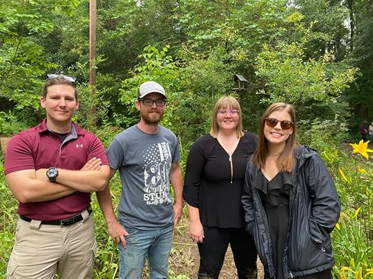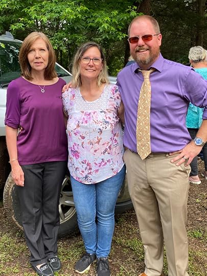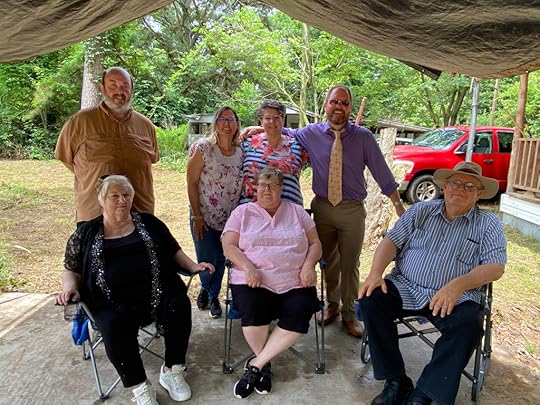 Mom’s side of the family — back row left is Richard Fowler, his wife is Tina in the pink shirt front row, Back row is Jill, then Tricia Foster, her mother is Claudette Wakefield in the front row left, me in the back, and Tim Smith in the hat.