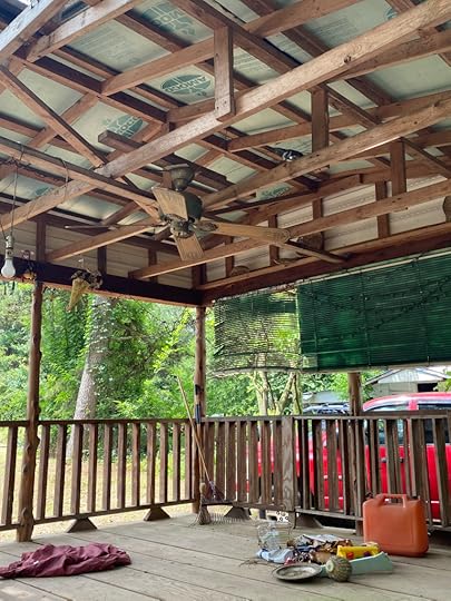 The house is gone too. We had to demolish it when it collapsed under the weight of a storm and the trees. The only thing left are the sheds (yes, plural for my father loved to build sheds) and the wooden porch he constructed.
