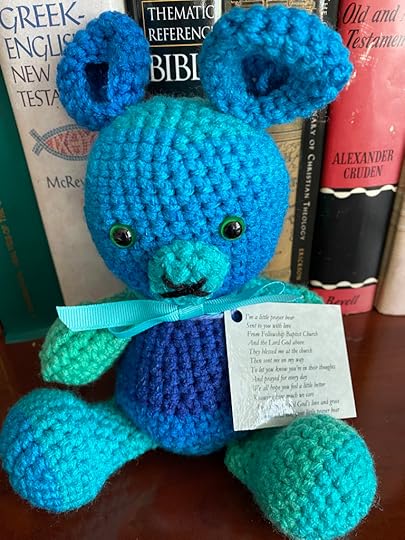 One of our little prayer bearsFor over a year now, hospital visits have been prohibited across the board. In this in between time I have prayed on the phone with a lot of people and visited them in their yard the night before, all masked up and often wearing gloves. Sometimes people prefer to come by my study at church — it feels a little more official, I think for some folks.