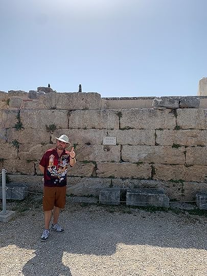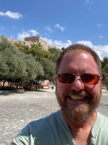 Me sitting on Mars Hill. Notice the Parthenon/Acropolis behind me. When Paul preached here, the Parthenon was already 500 years old.