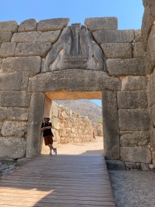 The famous Lion’s Gate at Mycenae. So large, the ancients believed it was built by cyclops. We drove down across the peninsula to the Peloponnese and spent two nights in Patras. It is a very young town full of life and energy. We used that as a base of operations for visiting Olympia and Mycenae. Both were impressive. We made our way south to Nafplion, which is a delightful seaside resort where we ate too much gelato and I bought a pair of leather sandals made right there on sight.