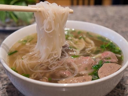 Click on the giant bowl of Pho to read about Santa John in the wonderful story “Santa Claus is Here”.