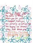 Below I’ve posted a scan of some of the letters they sent us at Christmas. They call my wife “Momma Kim”, which she loves. One of the letters called me “Aunt Jamie.” I don’t know what that was all about, but . . .