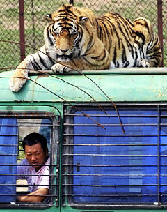 In China, a bus driver giving a tour of a wildlife park left the bus to check on things when it got stuck in the snow. A resident tiger pounced and dragged him into the woods.