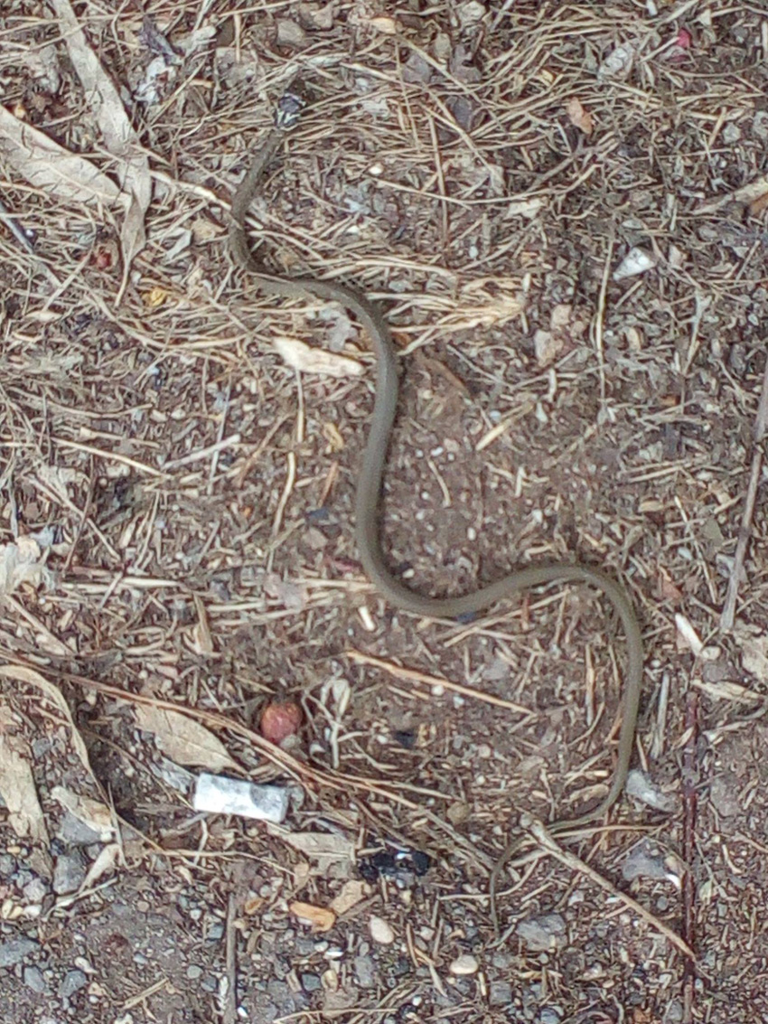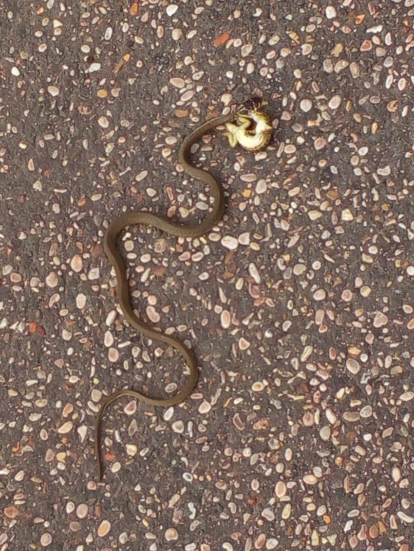 These photos of biaccos come to me courtesy of Francesco L. P., who discovered the snakes near his house in Rome. The one in the lower photo is eating a lizard. My Italian correspondent Max tells me the biacco (Coluber viridiflavus; also known as the green and yellow coluber) is non-venomous, but bites readily. Francesco was surprised to see the snakes active in winter. Mild weather is surely the cause. My friends in Oklahoma and Texas, where the temperature can vary considerably even in the heart of winter, sometimes see rattlesnakes sunning themselves on rocks or sidewalks on warm days. When the temperature drops, the snakes return to their dens.