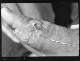 Let’s take a hypothetical, but typical, case: There is a swelling on a man's foot, like a pecan embedded under the skin. The pain is intense. He bathes it in the river to ease the burning. On the second day the blister bursts. From its ruin something like a soggy strand of spaghetti protrudes.