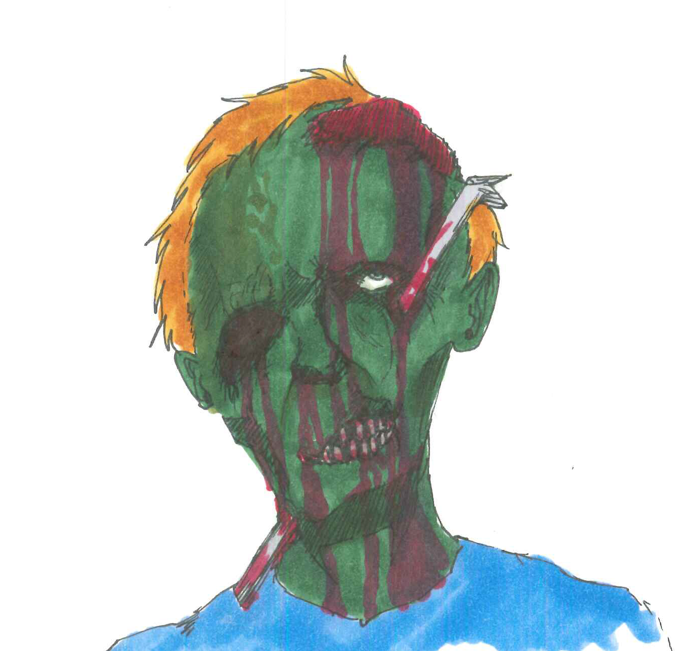 That's a crowbar broken off in that fellow's head. He has some interpersonal problems, as many zombies do.