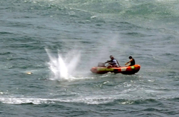 "Police went out in inflatable surf-lifesaving boats and shot at the shark, which they estimate was 12 to 14 feet long.