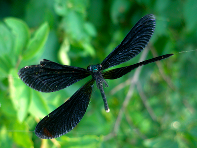 in a sapphire streak through miles of emerald forests, a sweet blue sky above,