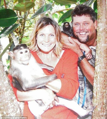 The monkey wriggled free and clamped down on Schwall's buttocks and thigh and tore apart his right hand. A friend grabbed a gun and Schwall told him to shoot, killing the monkey."