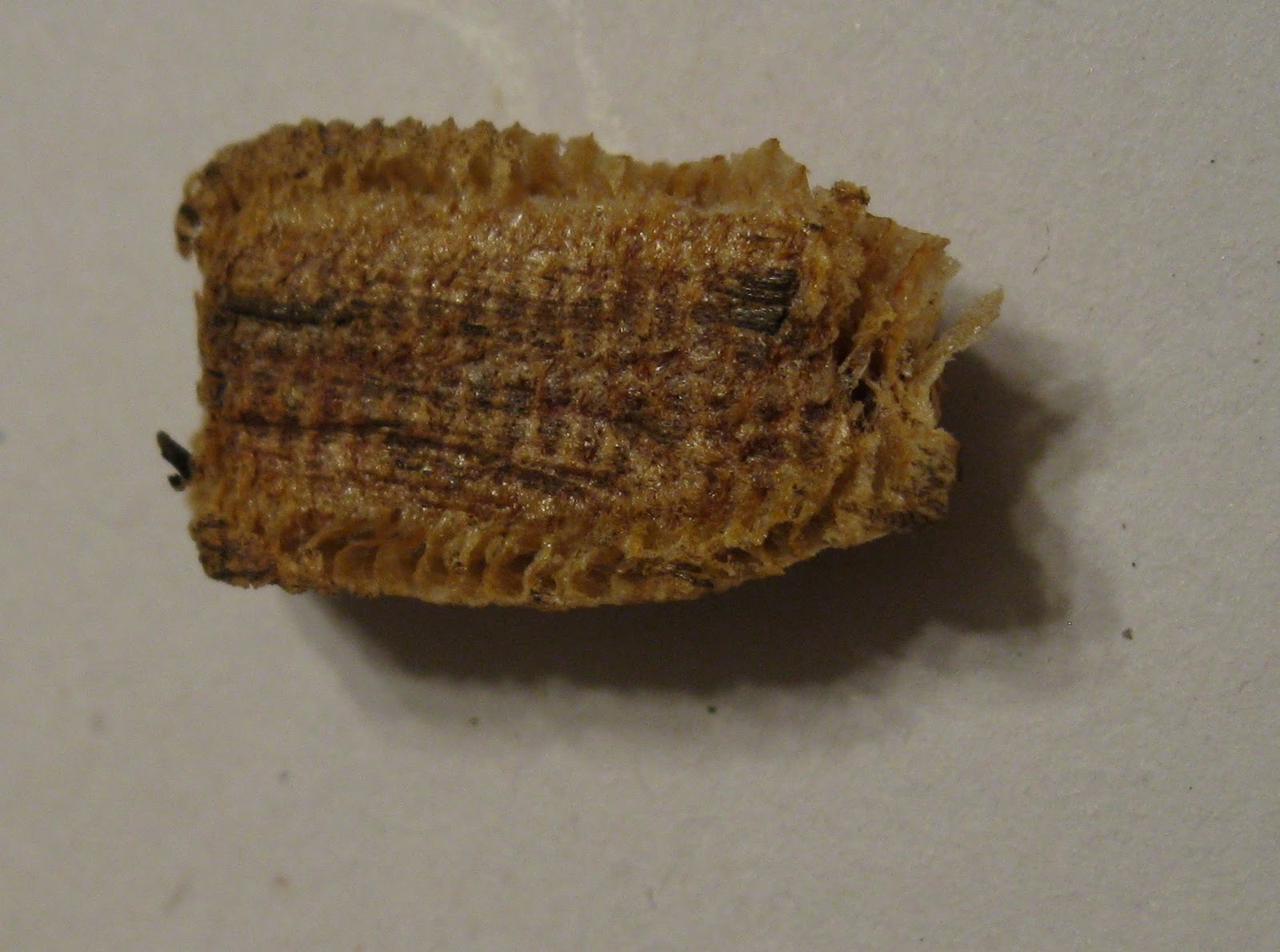 Then, as if to tell me I was on the right track, I noticed the oothecum—the egg case of a mantis. I wrote of these in The Red Hourglass—of the mother mantid’s way of pressing out eggs in a foam that solidifies into something harder than brick. It had to be an old one, for the November landscape was brown beyond the reach of the eye, inhospitable to the predator and its insect prey. I pried it off the post with my thumb—it snapped audibly and left a good bit of itself attached. Close up, I could see the pinpoint holes through which the mantid nymphs had escaped from their hatching cells.