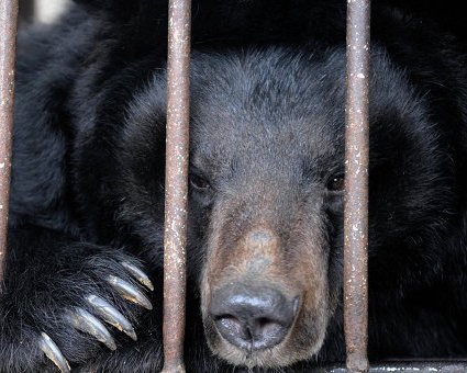 The Asian black bear is generally regarded as more dangerous than its similar-sized North American cousin. Occasionally it attacks people in the wild. This, however, is the familiar story of a zoo visitor with poor judgment.