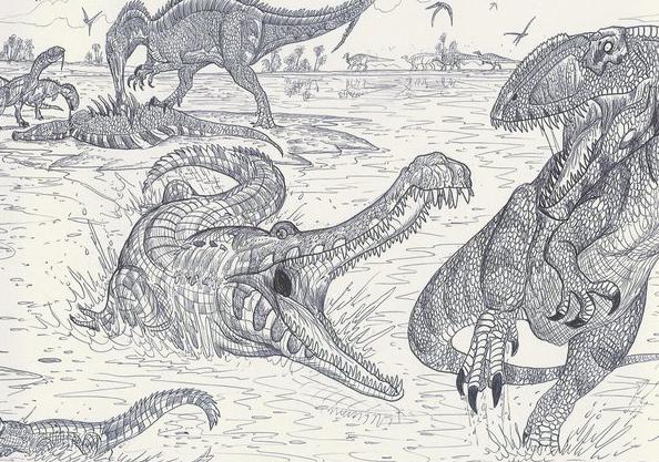 Sarcosuchus puts a dinosaur to flightIn 1966, two paleontologists named a new species of Cretaceous crocodile as Sarcosuchus imperator, the flesh-eating emperor croc. Despite its awesome name, this beast remained obscure until 1997, when American paleontologist Paul Sereno found additional remains in Niger.