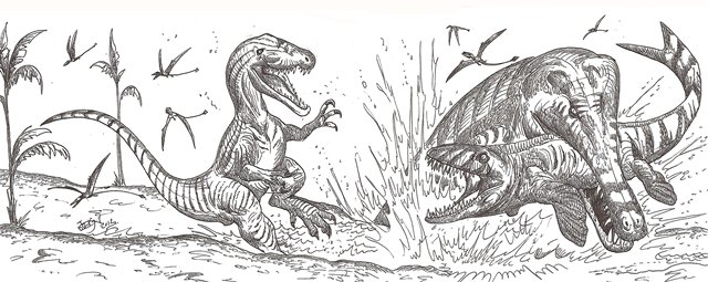 Indeed, Dakosaurus was a crocodile turned by evolution into the Jurassic equivalent of a great white shark. It didn´t chase after small fish like its cousins; it went for the giant ichthyosaurs and plesiosaurs of the time, even those larger than itself, and bit off huge chunks of their flesh, killing them via blood loss. With monsters like Dakosaurus roaming the seas, it is little wonder that, to our knowledge, no dinosaurs ever managed to conquer the Jurassic oceans.