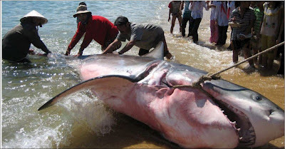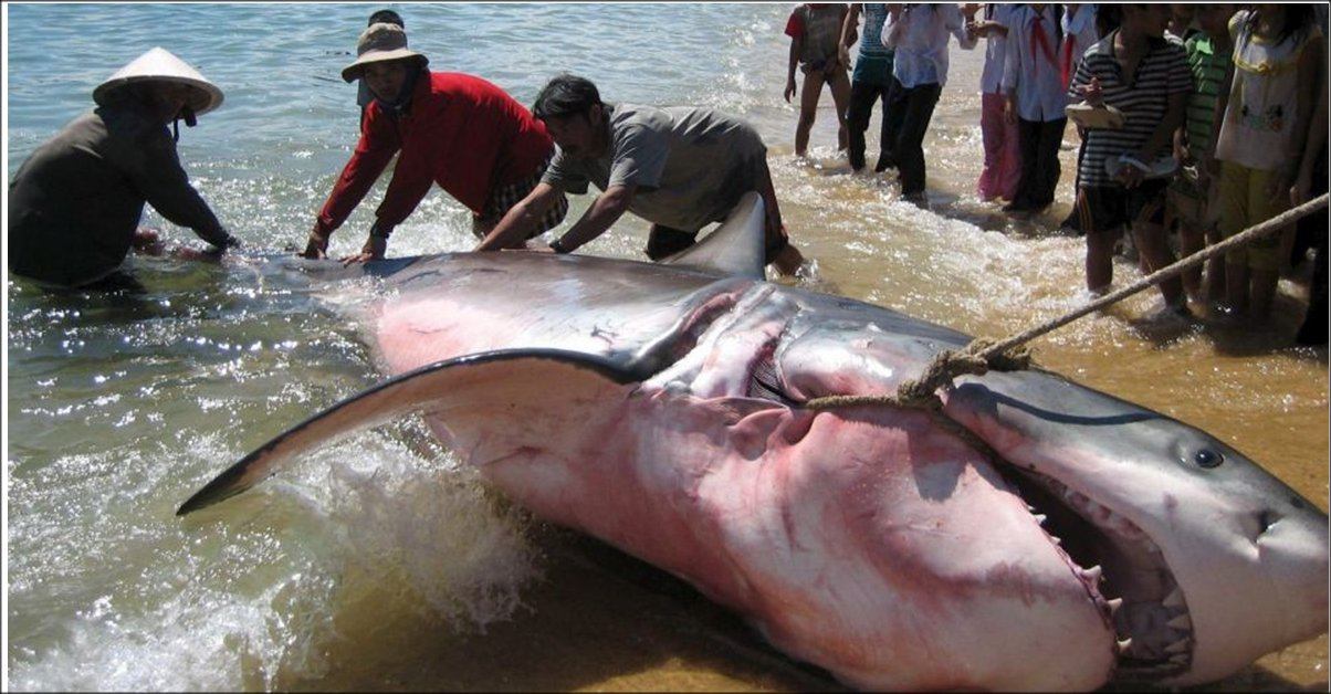 At a beach in Northwest Australia, sharks devour the carcass of a whale. The post on GrindTV identifies these hungry feeders as tiger and reef sharks.