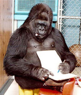 It wasn't until the 1960s that we started to study real apes in earnest. There were immediate revelations. The first was that we're not the only animals that use tools—chimps, for example, routinely use twigs to pick up ants. In 1972, a scientist named Patterson taught a gorilla named Koko sign language. The capacity for language was another trait we'd credited only to ourselves. If evolution had ruined our sense of divine preferment, the study of the great apes chipped away every other excuse for feeling superior.