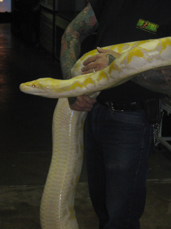 Photo by Parker Grice. Reticulated python provided by Twin Cities Reptiles.
