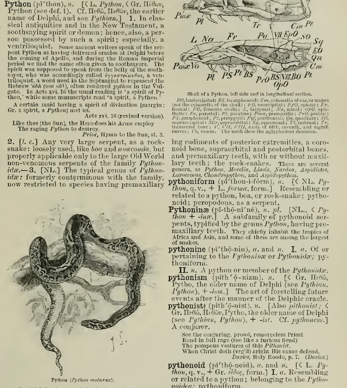 That the mythical dragon slain by Apollo gave its name to some of the largest and most spectacular snakes today-- including the longest snake in the world, the reticulated python of South East Asia-- is no surprise. But people still are taken aback when I tell them my theory about pythons themselves being the inspiration for the myths of the Western dragons. Everyone wants dragons and dinosaurs to be the same!
