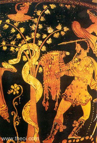 4th Century BCE image, with Jason stealing the Golden Fleece from a snake-like dragon