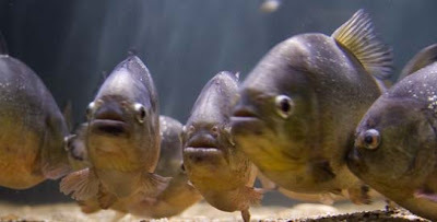 Piranhas attack bathers in Brazil: report | World | DAWN.COM: "BRASILIA:Carnivorous fish attacked bathers in a river in southern Brazil, leaving about 20 of them with bite wounds on their hands and feet, a news website said Monday, citing lifeguards."