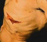 Where he had been wounded, there was a scar the size of a small coin. It soon after disappeared.