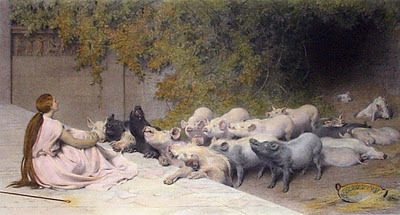 I never saw water so polished and glassy, like clarid polished marble, reflecting everything quite clean-cut in its lucid abysm, over which hardly the faintest zephyr breathed that still sun-down; it wimpled about the bluff Boreal, which seemed to move as if careful not to bruise it, in rich wrinkles and creases, like glycerine, or dewy-trickling lotus-oil; yet it was only the sea: and the spectacle yonder was only crags, and autumn-foliage and mountain-slope: yet all seemed caught-up and chaste, rapt in a trance of rose and purple, and made of the stuff of dreams and bubbles, of pollen-of-flowers, and rinds of the peach.