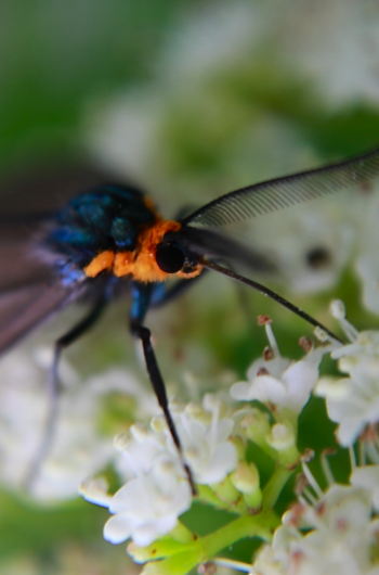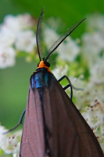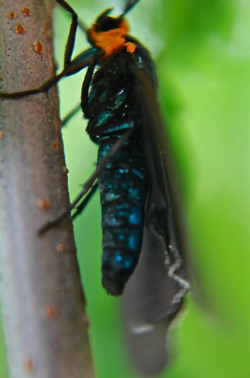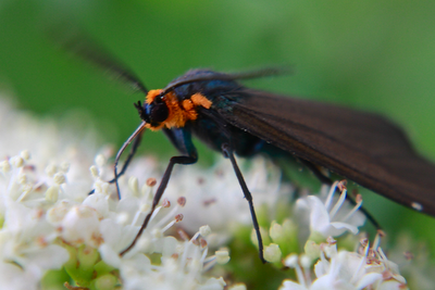 Birds and other predators associate this color scheme (black mixed with a bright color) with danger. It often occurs on stinging wasps. That's an advantage for this harmless moth, who may escape through confusion.