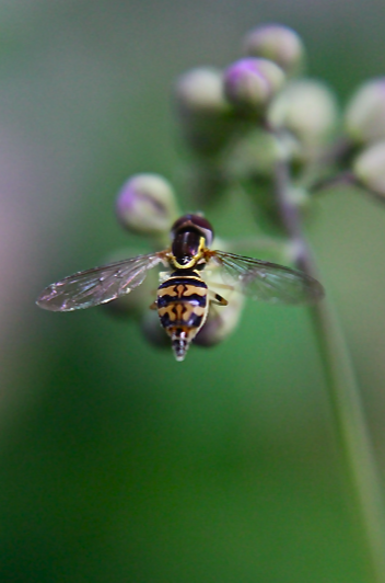 While we're at it, here's another example of Batesian mimicry: a fly that benefits from its resemblance to a bee. If you look close, you'll see that it has only two wings (a fly trait), not four (a bee trait).