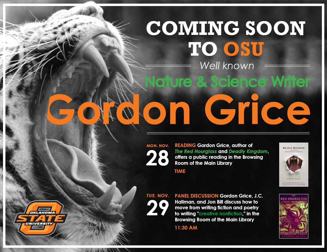 I'll be speaking at Oklahoma State University tonight at 7PM in the Browsing Room of the library. Hope to see some of you there!