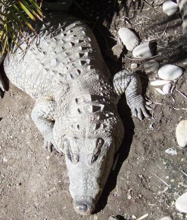 Although the eight-meter long individuals reported by afamous zoologist from Chiapas seem to be a thing of the past, large malesmeasuring over five meters are still found regularly. The same breeding centerwhere I provoked the female Morelet's used to be home to a six and a half-meterlong American crocodile, said by the gamekeepers to be possibly over a hundredyears old.