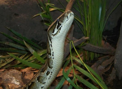 Some time later, I was standing in front of the GreenAnaconda's enclosure. A little girl and her father were besides me. The girlread the information sign besides the snake's terrarium, and asked her father: