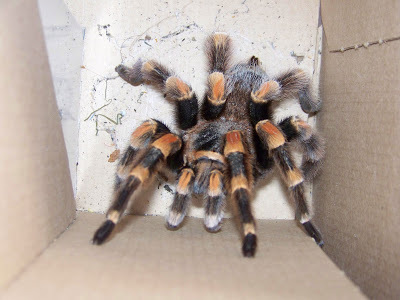 Anyways, I had always lived in relatively colder places, soliving in Colima was a complete change for me. The heat was almost unbearable;so much in fact that we barely went out of the house during daytime. The goodnews was that, being a tropical place, Colima was much richer when it came tocreepy crawlies of all kinds. My friend wasn´t very happy about it. One day, wefound a Mexican Red-Knee Tarantula near the garbage bins outside the house. Myfriend couldn´t believe it when I picked the hand-sized spider up and allowedit to crawl over my shoulders and neck. "It's really not that dangerous," Isaid. "Its venom is weak. The worst thing it could do would be to send its saetae into your eyes. That would be nasty but,it won´t do it unless it feels threatened".