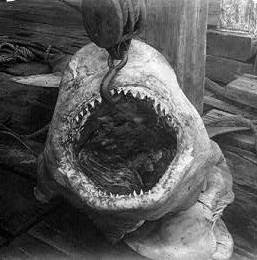 Now, sharks are among my favorite animals. When I was a kid,a group of friends and I found a requiem shark's severed head in a beach. Somebelieved that the shark had been beheaded with a machete, perhaps by afisherman. However, it made little sense to me, as I figured a fisherman whotakes the time to hack a shark's head off would probably keep the head insteadof throwing it away. Besides, it didn´t look like it had been cut off with a machete.In fact, the head bore every sign of having been bitten off by another, biggershark. I asked a local diving guide if there were any large sharks around. Hesaid the biggest he had seen were about four meters long.