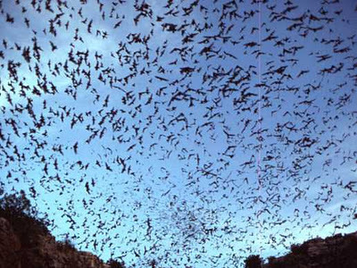 The birds of prey left, having silently taken their prey in the confusion of the emergence. The wind changed, and the bats turned to the south. They were still streaming out of the cave, and now, seen from a different angle, they looked like particles swept along in an invisible river. And the river wound into deepening dark, streaming beyond the range of human vision.