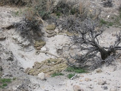 The diamondbacks in this region grow to more than seven feet long and thirty pounds. These measurements are meager compared to some tropical or marine reptiles, but they're substantial for a cold-blooded animal in a country of dry, boiling summers and ground-freezing winters. The secret of their survival here is the very wrinkling of the earth. In the eroded furrows that line the buttes, they can sulk through the sunny days. In the gypsum caves, they can lie in a mass with hundreds of their brethren beneath the frost line, sluggish through the winter. Occasionally a hunter sees a few of the reptiles basking on rocks on a clear winter day--then he knows he's near a den of them.