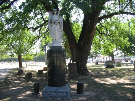 Mrs. Douthitt was a pioneer who claimed a homestead in the county in 1893, the year Enid came into existence. Her first historically noteworthy act was in 1904, the year after David George's suicide. Having surprised her husband in the barn during a romantic interlude with a maid, Mrs. Douthitt shot him on the spot. Before dying of the wound, Mr. Douthitt made out a will leaving his wife a share of his estate on the condition she never remarry. His will also asked that she not be prosecuted for his murder--a dying wish that was granted.