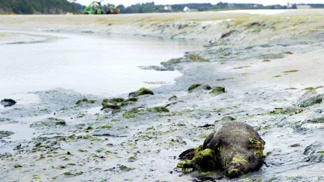 The nearby beach has been closed for safety, its cove stinking with algae which give off a poisonous gas when they rot."