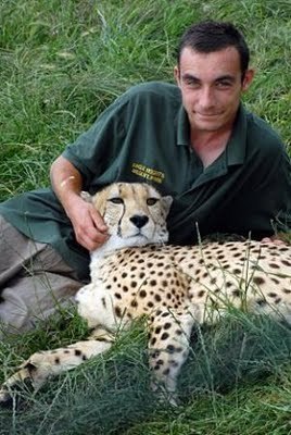 The cheetah had taken quite a few bites and scratches from both the cameraman and the trainer, ripping the shorts off one in one close swipe of the paw.