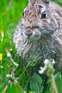 Cottontails eat clover and dandelion, among many other things, so they often venture onto lawns. D'Arcy caught this one in a few candid moments.