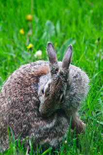 I know it's already hot in some places, but here in Wisconsin spring still feels new. The cottontailed rabbits have emerged, looking thin and disheveled. They'll fatten as the season warms up.
