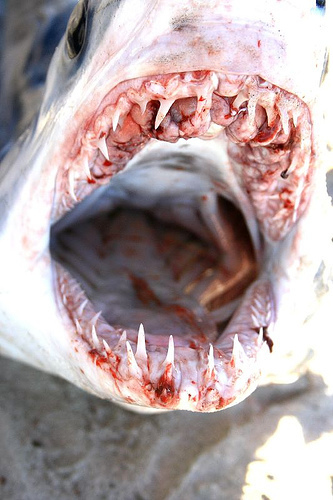 Mouth of a mako sharkI've recently re-read Earnest Hemingway's The Old Man and the Sea. Among its many other virtues, the book does a great job of describing its wildlife. Here's Hemingway's description of a mako shark: