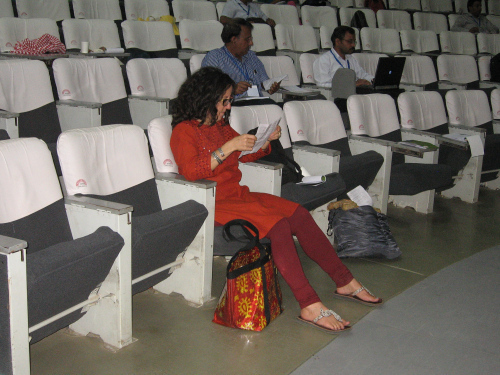 I also attended a couple of sessions, which turned out to be in the same auditorium as the one used in 3 Idiots when the character Chatur (AKA the Silencer) demonstrates his idiocy when he memorizes a speech in Hindi (because he grew up outside India and is not fluent). His classmates changed some of the words so that he would make a fool of himself before his professors and peers (see above videos–the second one presents it with a bit of context to show you how they pulled the prank). The image above of the head of USID speaking shows Chatur on the screen behind him; there is also one of me in the audience above. Below is a scene that takes place in a courtyard (photo of it in the gallery below) and it is one of the fabulous opening scenes that show you how the protagonist, Rancho, challenges the educational system. A second one, also below, is equally brilliant.